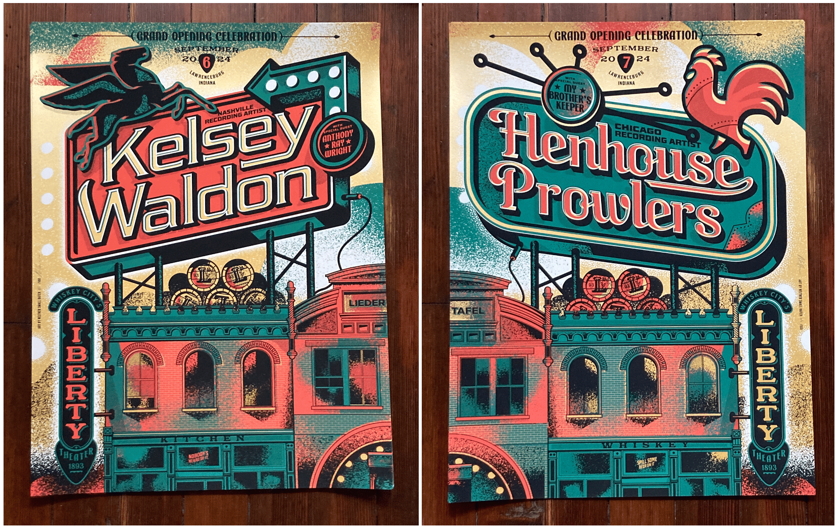 This limited edition, commemorative poster celebrates the Grand Opening of Liberty Theater in Lawrenceburg, Indiana, Whiskey City USA, on September 6th 2024.